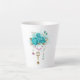 Caneca De Café Latte Rosas Turquesas com Chaves