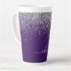 Caneca De Café Latte Roxo Silver Glitter Girly Glam Monograma