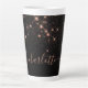 Crie sua própria caneca de latte de diamante preto e rosa personalizada com seu nome de script manual personalizado moderno.