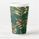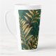 Seamless pattern of gold, jewelry, shiny fern branches and leaves on green, woodland, textured background. Golden fern.