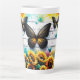 Esta caneca latta apresenta uma design vibrante e encantadora que captura a beleza da natureza. A trabalho de arte apresenta borboletas grandes e detalhadas com asas pretas e amarelas, floreando graciosamente sobre um pano de fundo de arame farpado e salpicos de tinta colorida. Abaixo, um campo de girassóis brilhantes e alegres floresce, adicionando um toque de calor e alegria. Borboletas menores em tons de chato e amarelo somam ao charme caprichoso da cena. Esta caneca é perfeita para trazer um toque da serenidade da natureza para o café ou chá matinal.