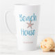 Tipografia azul e coral Caneca de café da Casa de Praia que você pode personalizar com seu nome, negócios ou data de estabelecimento. Design do Emporium de Jenn.