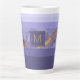 As faixas de gradiente do índio profundo ao branco são destacadas por uma tira de mármore dourado e revestidas por uma etiqueta dourada para segurar o seu monograma nesta bela design de caneca latta. Procure ID670 para ver outras opções de cores e produtos com este design.