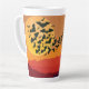 Morcegos negros voando para as melodias de Kokopelli flute. Moon do sudoeste Mug de café Kokopelli.Combinação de cor Vivid Halloween que você pode personalizar. Culturas indígenas nativas americanas de Kokopelli. Atribuído a aliens antigos ou arte tribal e inspirado em desenhos de cavernas e rochas. Personalize seus estilos nativos de caneca de café americana do sudoeste. Ideia de presente de excelente do sudoeste temático de copos Kokopelli. Ou transferir design para outro produto.