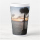 A cena tranquila de um sol se pondo sobre o calmo oceano emparelhado com palmeiras suaves e balançando cria uma atmosfera convidativa, perfeita para transformar qualquer espaço em um retiro pacífico onde você pode se desenrolar e relaxar.