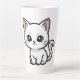 Charming white cartoon cat sitting with large, sparkling, adorable eyes.