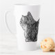 Uma mesa de pata rasgada com patas e orelhas atadas, virada para a frente. A textura macia do ponto dá um impressão clássico em preto e branco. Uma picada quente para as manhãs de inverno e amigos apaixonados por gatos.