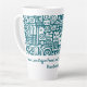 Caneca De Café Latte Teal escuro e doodles brancos 1 de 4