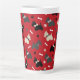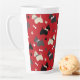 Cães escoceses, cinzas e cães escoceses que vestem arcos, com pegadas e ossos de cães em fundo vermelho.