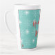 Feriados Vermelhos Felizes com flocos de neve Latte Mug. Esta caneca encantadora e festiva é perfeita para a estação e para festas de férias em casa ou no escritório. Design por Inge Lewis, presente de excelente para a família ou amigos. Procure mais itens correspondentes na loja online ingeinc.com.