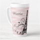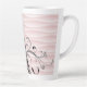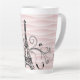 Aproveite o seu café com uma caneca de latte rosa e rosa, Torre Eiffel, personalizada. Design de caneca latta mostra a Torre Eiffel adornada com elogios elegantes contra um fundo ondulado cor-de-rosa. Cores adicionais disponíveis com este design também.