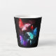 Caneca De Café Latte Três Borboletas brilhantes sobre o fundo noturno
