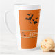 UM HELIZ MALHEIRO LATTE MUG A TER PARA O FERIADO DE HALLOWEEN. O MUG É DECORRIDO COM BATS E TEXTO TRICK OU TRATE E FELIZ EM LARANJA, PRETO, VERDE E BRANCO. ESSA MUG DARÁ UM PRESENTE ESPECIAL À FAMÍLIA E AMIGOS, POIS PODE SER PERSONALIZADA COM NOMES, INICIAIS, DEDICAÇÕES, MONOGRAMAS, COTAS OU EXPRESSÕES OU ATÉ ADICIONAR IMAGENS PRÓPRIAS PARA TORNAR MAIS ÚNICO ADEQUAR-SE AO BENEFICIÁRIO DO PRESENTE.