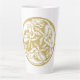 Esta Caneca de Café com Leite exibe o charme atemporal da arte celta, com seus padrões entrelaçados hipnóticos e representação simbólica de lealdade e amizade através da representação de cães fiéis.