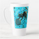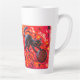 Bold illustration of a playful black cat chasing a yarn ball, printed in a split design where one tall latte side glows in fiery red and the other in bright turquoise blue, giving the mug a unique double-color look. Dynamic doodle lines, arrows, stars and neon accents create a modern graffiti, pop-art atmosphere that feels fun, energetic and instantly eye-catching.