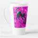 Bold and playful illustration of a black doodle-style cat chasing a yarn ball, printed in a split two-sided design where one tall latte panel glows in hot pink and the other in fiery red, with stars, arrows and scribbles adding a fun graffiti vibe; the contrasting neon colors, dynamic lines and cute feline expression create a unique modern art look that instantly stands out.