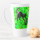 Bold two-tone mug featuring a playful black cat with a yarn ball, drawn in a hand-drawn doodle style on a neon green side and a warm orange side. This eye-catching pop art cat design is perfect for coffee lovers who want a fun, colorful statement piece in their daily routine.