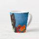 Latte Mug com um lindo gato de smoking Van Gogh! Esta pequena gatinho se posiciona ao lado de uma cesta de flores laranja sobre uma mesa vermelha. Um presente de excelente para amantes de gatos e colecionadores de arte holandeses!