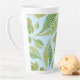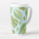 Caneca De Café Latte Verde Deixa Cor Azul. Padrão Folha