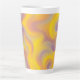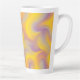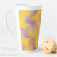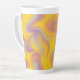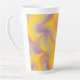 This latte mug features a dynamic swirl of yellow, orange, purple, and pink tones, blending together in a smooth, fluid abstract pattern that feels energetic and expressive.