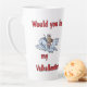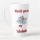 Dia de os namorados "Você seria meu Valhallentine?" Caneca para café latte. Mostre minha ilustração de uma Valquíria, uma deusa da mitologia nórdica, que está montando um cavalo voador, com seu amante guerreiro. Ela vai escolher um guerreiro caído da batalha e levá-lo para Valhalla, o palácio do deus. Lá, devotá-lo, e treiná-lo para a batalha final de Ragnarok.