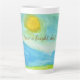 Start your morning with a splash of sunshine! This beautiful tall ceramic latte mug features a hand-painted watercolor landscape with a bright sun and the cheerful message 'Have a bright day!'. Created by a talented young artist, this whimsical design brings a touch of joy and 'naive art' charm to your kitchen. It’s the perfect gift for teachers, friends, or anyone who needs a little extra brightness in their day.