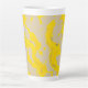 This latte mug features a flowing pattern of organic yellow swirls layered over soft beige and subtle gray accents, creating a smooth, contemporary abstract aesthetic.