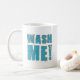 O texto de vista sujo em azul e em marrom "delicadamente" exige para você "lava-me!"