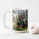 Esta caneca divertida mostra um homem de desenho cortando seu gramado. Excelente para aquele homem que ama seu cortador.