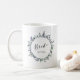 Esta caneca botânica moderna apresenta as folhas de aquarela em tons de tendências de verde, azul e cinza, e a caligrafia correspondente que diz "noiva", para um olhar na moda que é minimalista e rústico.