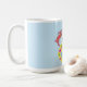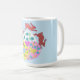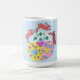 This colourful coffee mug features my ebullient design of a trio of Hares leaping over a cluster of brightly decorated Easter Eggs.
