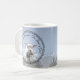 Esta caneca apresenta uma representação digital de um carneiro exibida sobre uma foto de nuvens em um céu azul. Uma fronteira floral circunda o design. As palavras, "Esta Páscoa Lembra-se da Lâmpada de Deus", curvam-se por cima.
