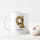 Personalize esta caneca de café personalizada com letra-leopardo minúscula "q" acrescentando um nome. As opções para alterar a cor do texto para o nome, seu tamanho e tipo de fonte estão disponíveis.