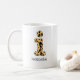 Personalize esta caneca de café personalizada "i" da letra-leopardo, acrescentando um nome. O texto preto para o nome personalizado está em uma fonte de tipo manuscrito giramente.