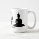 "Let Me Meditate On That (right after I finish my coffee) Buddhist humor quote mug. This jumbo coffee mug features two Buddhas sitting in lotus posture. It pairs a calm meditation image with a light humor twist that resonates with Buddhist practitioners who appreciate their coffee as much as their practice. A light hearted quip perfect for yourself or as a gift for an office coworker, friend, or roommate who must have their morning brew before they sit and stew.