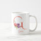 A letra cor-de-rosa bonito "G" da aguarela, embellished com um buquê floral da aguarela delicada, personalizou com nome, caneca de café.