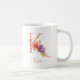 A letra cor-de-rosa bonito "K" da aguarela, embellished com um buquê floral da aguarela delicada, personalizou com nome, caneca de café.