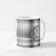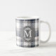 Padrão de xadrez de creme suave e doce e cinza colorida com círculo de monograma de cinza média, monograma branco maiúsculo e colchetes decorativos brancos no topo e no fundo.