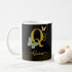 Letra luxuosa de ouro Q adornada com borboletas e sotaques botânicos, projetada para uma caneca feminina e elegante. Perfeito para café, chá ou presentes, este trabalho de arte de alta qualidade inclui um nome personalizável para um toque chic e pessoal.