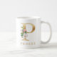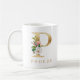 Uma caneca de café personalizada com uma falsa letra de ouro "P" monograma, com ilustrações decorativas de cor d'água floral e folhagem. Personalize-o facilmente com seu nome ou crie um presente único para seus entes queridos.