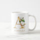 Uma caneca de café personalizada com uma falsa letra de ouro "A" monograma, com ilustrações decorativas de cor d'água floral e folhagem. Personalize-o facilmente com seu nome ou crie um presente único para seus entes queridos.