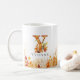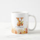 Folhas de aquarela elegantes enquadram o fundo dessa caneca enquanto a letra Y é uma colagem de elementos festivos de queda de folhas laranja e amarelas, Personalize com um nome para torná-la exclusivamente sua.