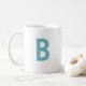 Manga cerâmica personalizada com grande azul de turquesa, inicial à frente e atrás, em estilo minimalista limpo. Personalize a letra do monograma usando as caixas de texto. ideia de presente de excelente para homens ou mulheres — para colegas de trabalho, amigos, familiares ou estudantes. Ideal para aniversários, feriados, Dia do Pai ou presentes de volta à escola como presente personalizado para ele ou para ela. A cor negrito adiciona um olhar moderno e fresco a qualquer cozinha, bar ou espaço de trabalho. Use como uma caneca de nome personalizado, caneca de letra monograma ou presente personalizado para casa ou escritório. Você também pode mudar a cor na Ferramenta Design Zazzle.