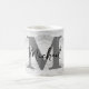 O moderno e clássico Marble Monograma Mug apresenta um clássico design de padrão de mármore e pode ser personalizado com seu nome. Esta caneca faria um presente pensativo e personalizado para café, chá e amantes de chocolate quente. É perfeito para qualquer ocasião, incluindo feriados, aniversários e muito mais.