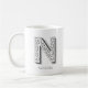 Caneca de café branca personalizável com a letra N em tipografia única e escura de cinza colorida. Adicione seu nome usando o recurso de personalização.