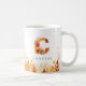 Folhas de aquarela elegantes enquadram o fundo dessa caneca enquanto a letra C é uma colagem de um elemento festivo de folhas laranja e amarelas, Personalize com um nome para torná-la exclusivamente sua.