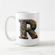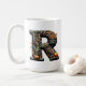 The design is a vibrant and festive representation of Thanksgiving, combining seasonal autumn elements with a playful cartoon turkey. At the heart of the image, the letter "R" stands out, adorned with vibrant leaves, pumpkins, and acorns, evoking a delicate autumnal atmosphere. Beside the letter stands a charming cartoon turkey, adding a touch of fun and personality to the design.