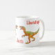 Uma engraçada e assustadora caneca de dinossauro de velociraptor que garante que ninguém toma seu café. Torne um amigo ou membro da família numa nova espécie de dinossauro com este modelo personalizável e divertido. Liam se torna Liam Raptor. Dois velociraptores coloridos assustadores carregar uma família ou amigos chamam um nome criando uma caneca divertida para amantes de dinossauros. Esta engraçada design de caneca de café é ideal para a sua família não matinal e amigos com os dinossauros da era jurássica, engraçados, com pinceladas laranja e verde criadas usando mídias de arte digital acrílicas que dão uma sensação vibrante, mas orgânica, a essa arte divertida. Totalmente personalizável e pode ser transferida para outros produtos na loja pressionando a ferramenta de transferência design. Velociraptor Dinossauro Ilustrações e slogan engraçado criados pela artista Catherine Sweetman