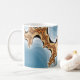 Um design de arte abstrato de relâmpagos contra um fundo azul.