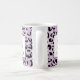 Show off your glam style with this fun personalized mug featuring a vibrant lilac purple and black leopard print pattern. This bold, colorful design is perfect for adding a pop of color to your routine. Easily customize it with your name and initial to create a stunning, unique monogram coffee cup. It makes an exciting personalized gift for teens, best friends, or anyone who loves chic, trendy animal prints.